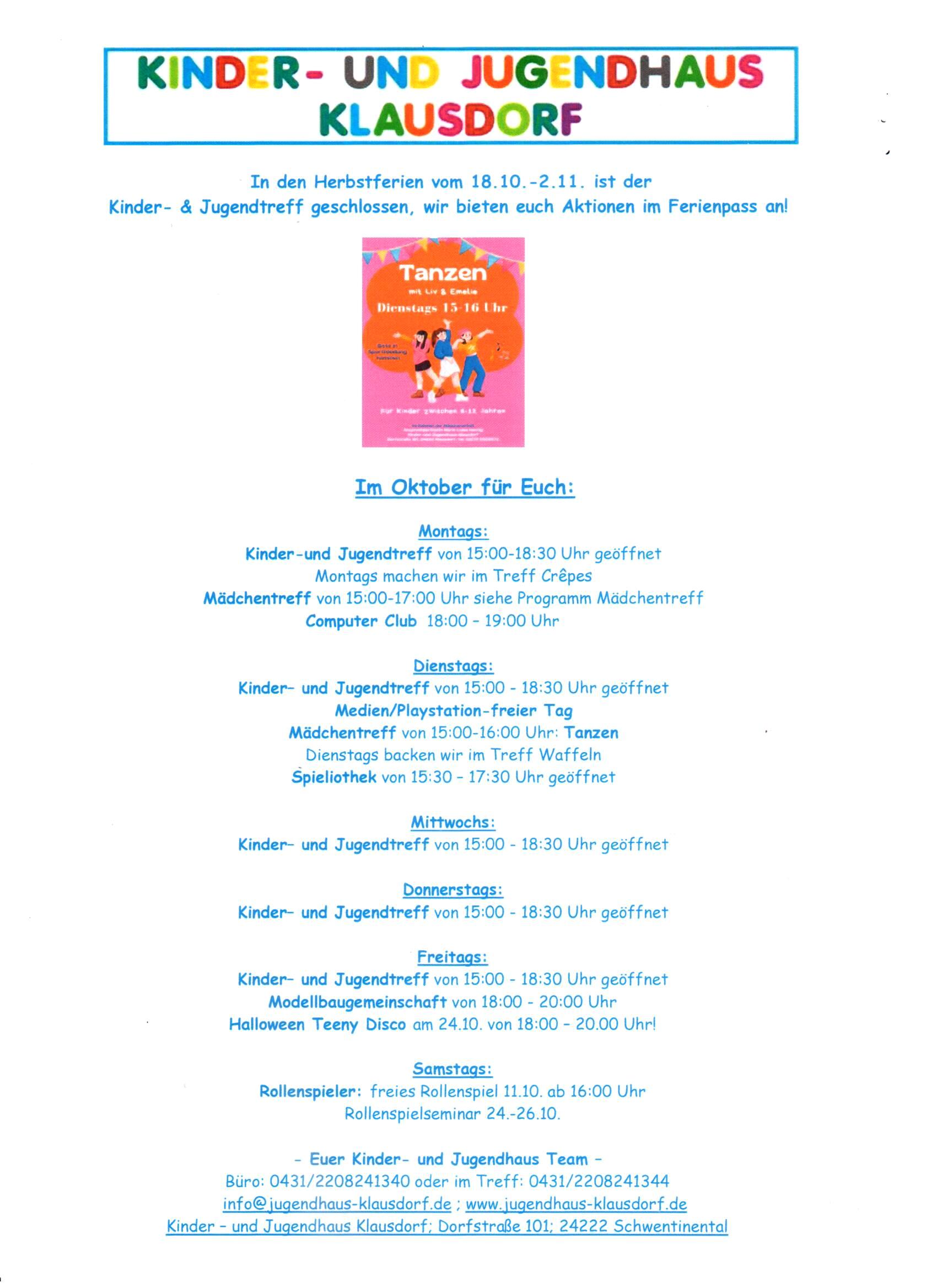 Neuigkeiten aus dem Jugendhaus Klausdorf